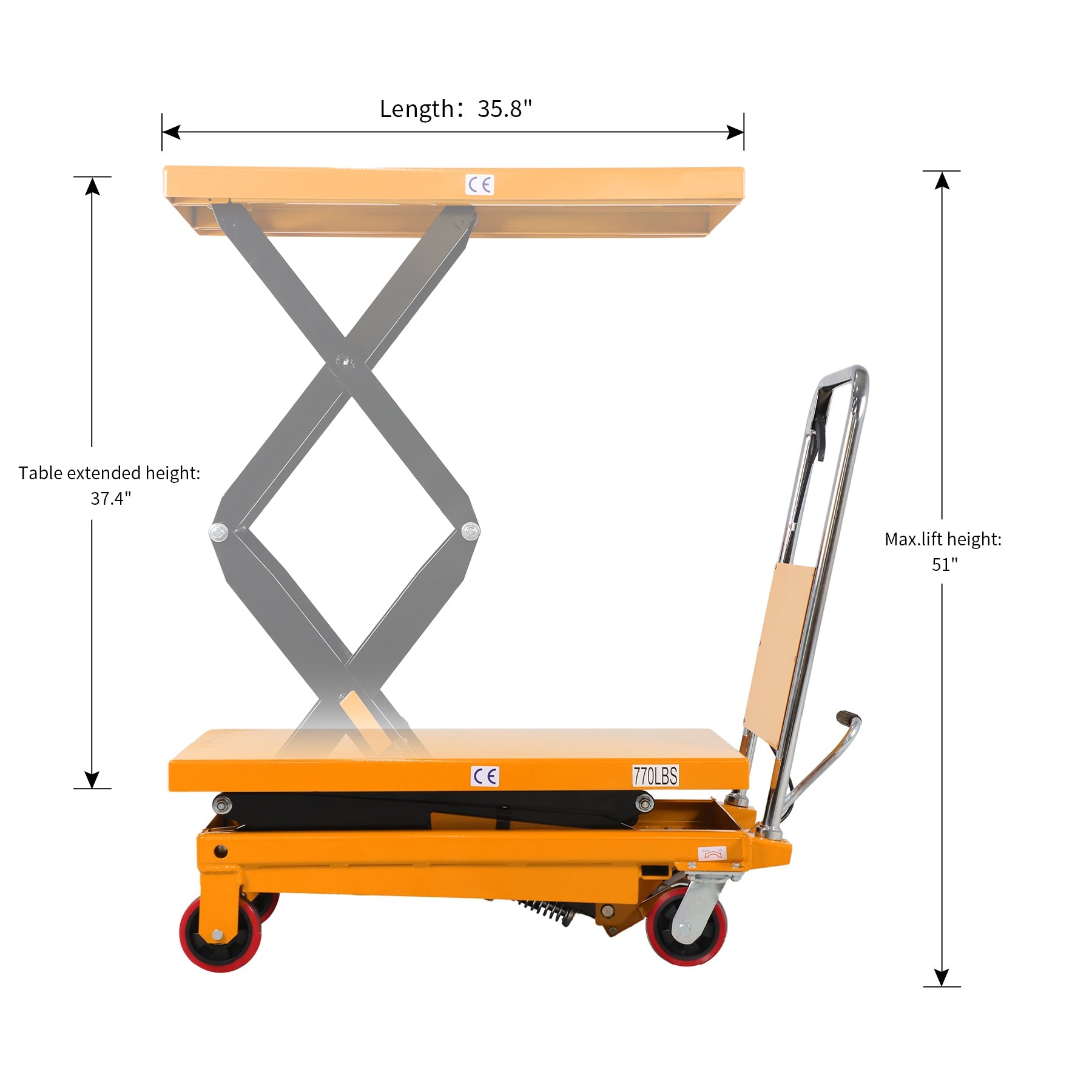 - Table Max.lifting height: 51"